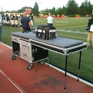 For all your outdoor and indoor sideline Athletic Trainer needs! Mobile, heavy duty, large storage capacity with a cushioned water resistant cushion and much more!