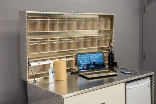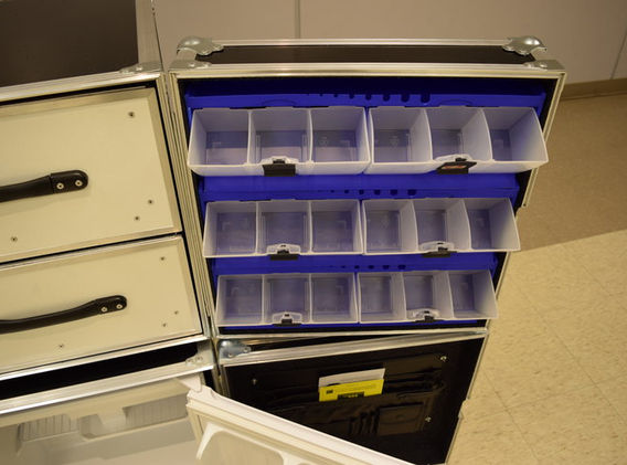 Weather resistant, lightweight, and heavy duty! The most efficient means of storing and transporting all of your medical supplies. Non porous surfaces, complete with tilt and removable storage bins, large work surface, pull-up power source with USB ports, aluminum storage drawers on 150 lb glides, removable work table, gas filled lid struts, optional fridge and much more! Proven and reliable since 2005 and fully warrantied.